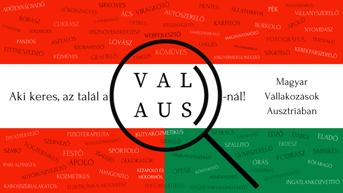 Az oladon rengeteg segítség van az ausztriában élő, dolgozó magyaroknak és vállalkozásoknak. Az itt található cikkek tájékoztató jellegűek, ezért érdemes a Részletekre kattintani, ahol bővebb információ található. Ezen kívül szívesen fogadom a véleményeket, és a javaslatokat. Az oldal folyamatosan bővül, ezért érdemes többször visszalátogatni. Ha regisztrálsz a Szaknévsorba, ingyen hirdethetsz a VALAUS facebook oldalán és a csoportjában is.